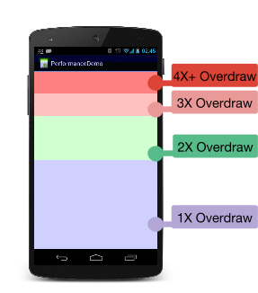 一些如上述例子所說的過度繪制示例是不可避免的。然而,過多的多度繪制會引發明顯的性能問題,因此你必須將過度繪制的可能性降到最小。