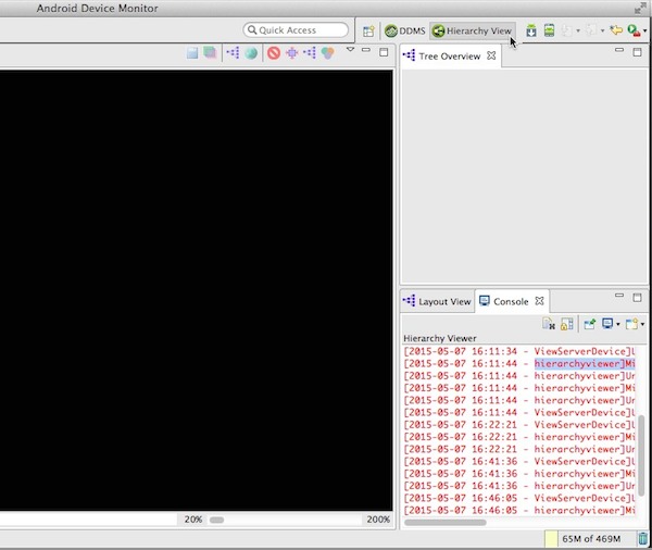 在我們進一步了解Hierarchy Viewer之前,你需要知道它的一些規則。首先Hierarchy Viewer只能與正在運行的App進行交互,而不是你的源代碼。這就是說你需要將App安裝到你的設備或者模擬器上。