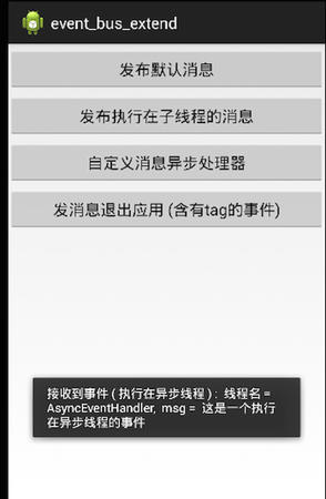 當然,由於AndroidEventBus的高度定制化,我們還可以通過AndroidEventBus來實現各種各樣的功能,它到底還能怎麼玩,我就不做過多的演示了,開發者可以充分發揮自己的聰明才智和想象力。