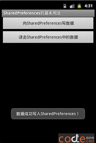 Toast.makeText(this, "數據成功寫入SharedPreferences!" ,