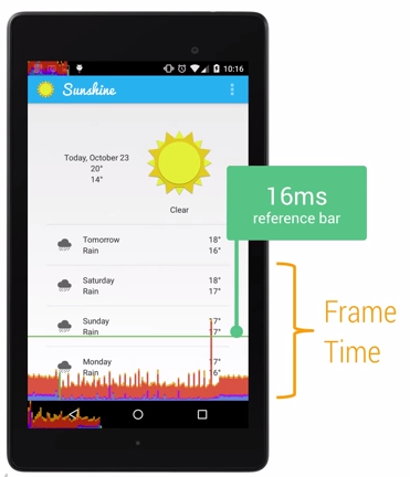 2015年伊始,Google發布了關於Android性能優化典范的專題, 一共16個短視頻,每個3-5分鐘,幫助開發者創建更快更優秀的Android App。課程專題不僅僅介紹了Android系統中有關性能問題的底層工作原理,同時也介紹了如何通過工具來找出性能問題以及提升性能的建議。主要從三個 方面展開,Android的渲染機制,內存與GC,電量優化。下面是對這些問題和建議的總結梳理。