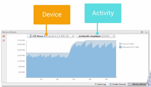 為了尋找內存的性能問題,Android Studio提供了工具來幫助開發者。