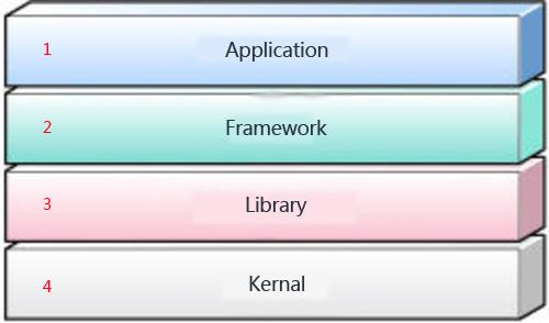 iOS 響應順序依次為 Touch——Media——Service——Core 架構,當用戶只要觸摸接觸了屏幕之後,系統就會最優先去處理屏幕顯示也就是 Touch 這個層級,然後才是媒體(Media),服務(Service)以及 Core 架構。