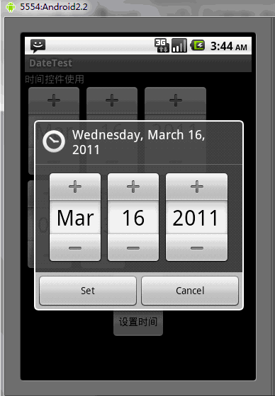 當點擊“設置日期”按鈕後,就會顯示如下對話框樣式的DatePickerDialog