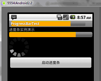 下面是個例子,分別由標題欄進度條,長條形進度條和圓形進度條組成,並用線程控制。