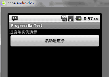 <?xml version="1.0" encoding="utf-8"?> <LinearLayout xmlns:android="http://schemas.android.com/apk/res/android" android:orientation="vertical" android:layout_width="fill_parent" android:layout_height="fill_parent" > <TextView android:layout_width="fill_parent" android:layout_height="wrap_content" android:text="進度條實例演示" /> <ProgressBar android:id="@+id/progress1" ---設置進度條為長條形 android:layout_width="fill_parent" android:layout_height="wrap_content" android:visibility="gone"---設置其不可見 /> <ProgressBar android:id="@+id/progress2" ---設置進度條為圓形進度條 android:layout_width="wrap_content" android:layout_height="wrap_content" android:max="100"---設置其最大值 android:progress="50"---設置當前進度值 android:secondaryProgress="70"---設置次要進度值 android:visibility="gone" /> <Button android:id="@+id/button" android:layout_width="fill_parent" android:layout_height="wrap_content" android:text="啟動進度條" /> </LinearLayout>