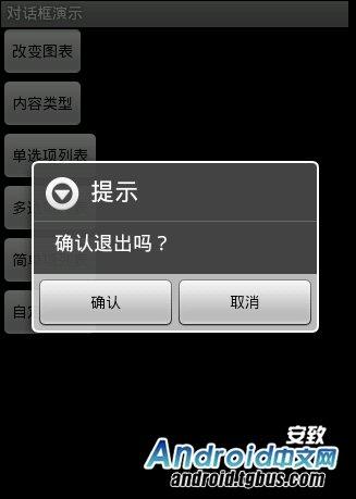 1.該效果是當按返回按鈕時彈出一個提示,來確保無誤操作,采用常見的對話框樣式。