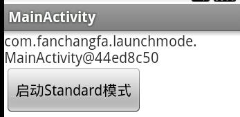 再點擊”啟動Standard模式”按鈕,由於MainActivity的啟動模式為standard,所以在此會重新創建一個MainActivity對象: