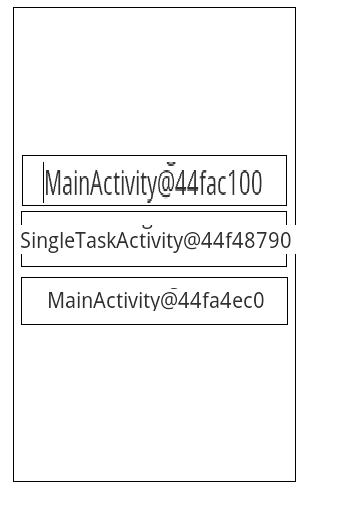 當在上面界面中點擊”啟動singleTask模式”按鈕時,由於檢測到當期棧中第二個為我們要創建的Activity,會將最上面的MainActivity消滅,然後將SingleTaskActivity設置為棧頂: