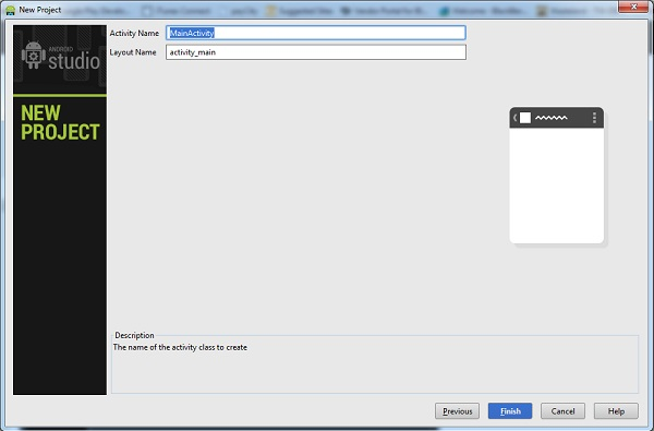 由於我們在之前的步驟中勾選了“Create activity(創建activity)”項目的勾選框,因此這裡導航會要求大家對Android Studio將為我們創建的Activity類進行配置。