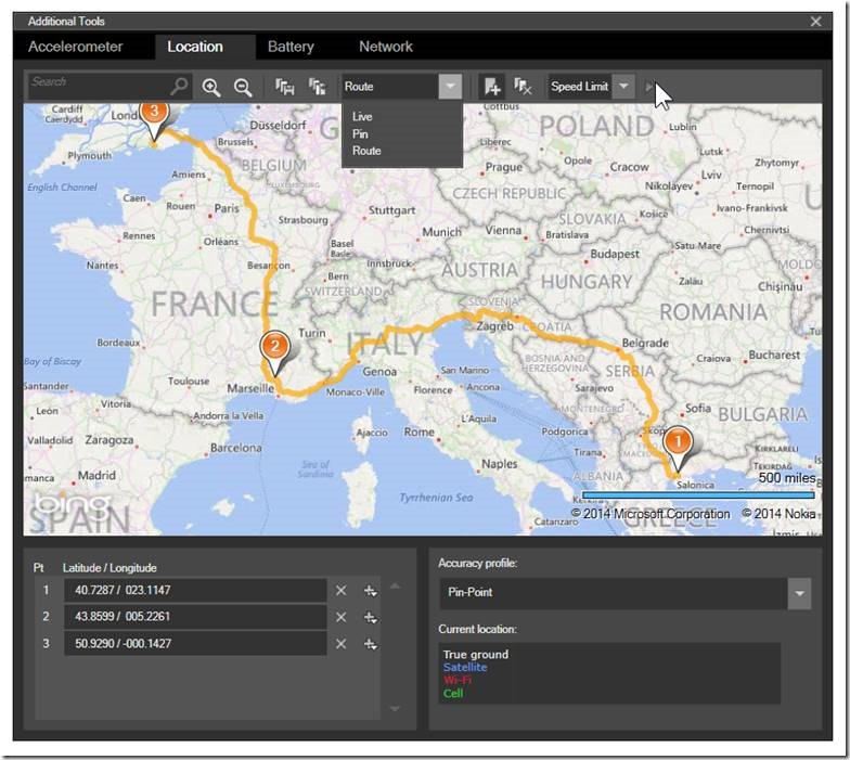 如果你的應用跟導航, 地理圍欄(geofencing), 行走/騎行/駕駛有關. 那麼, “附加工具”(Additional Tools)面板中的 “定位”(Location) 選項卡裡頭的定位跟模擬駕駛(driving simulation) 功能就會變得很有用 .
