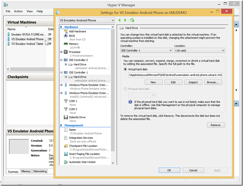 C:\Users\%username%\AppData \Local\Microsoft\XDE\Android\vsemu.sdcard.vhd