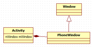 android.app.Window是一個抽象類,其中setContentView()方法並沒有具體的實現,而這個方法的真正實現是com.android.internal.policy.impl.PhoneWindow類。使用類圖表示: