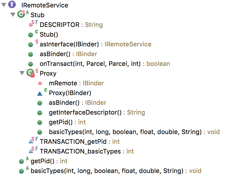 針對上面這個aidl文件生成的java文件中包含的結構如下圖所示: