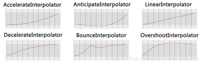 在Android pre-L版本只能使用系統的插值器(一般情況下,系統提供的27種插值器已經足夠我們使用了),不能自定義。