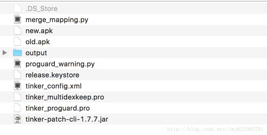 tinker提供了patch生成的工具,源碼見:tinker-patch-cli,打成一個jar就可以使用,並且提供了命令行相關的參數以及文件。