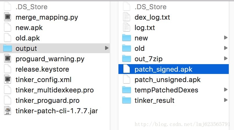 java -jar tinker-patch-cli-1.7.7.jar -old old.apk -new new.apk -config tinker_config.xml -out output