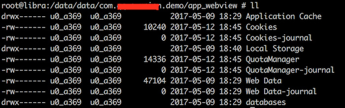 但是在5.1系統上,/data/data/包名/app_webview/文件夾依然存在,只是4.4系統上面存儲WebView自帶緩存的app_webview/cache文件夾不再存在了(注意下App Cache目錄還在),如下圖所示。