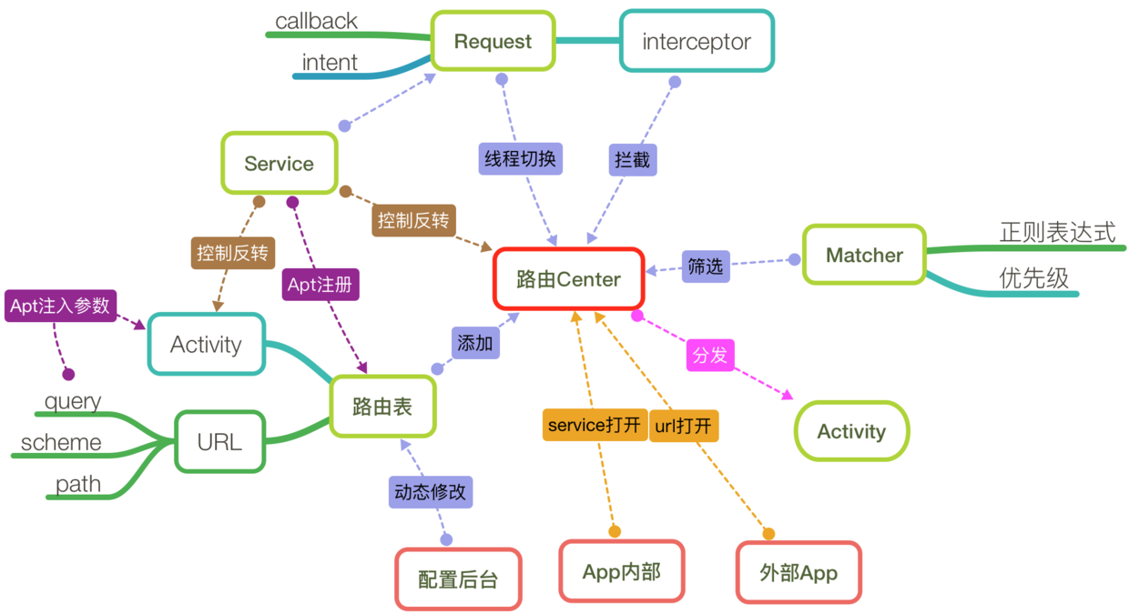 其實說到底,路由的本質就是注冊再轉發,圍繞著轉發可以進行各種操作,攔截,替換,參數獲取等等,其他Apt、Rxjava說到底都只是為了方便使用出現的,這裡你會發現各種路由庫反而為了修復各種工具帶來的問題,出現了原來沒有的問題,譬如DeepLinkDispatch為了解決Apt沒法匯總所有Module路由,每個module都要手動注冊,ARouter為了解決Apt沒法匯總所有Module路由,通過類操作耗時,才出現分組的概念。