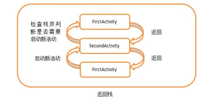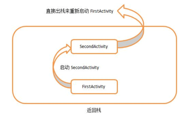 當活動的啟動模式指定為singleTask,每次啟動該活動時系統首先會在返回棧中檢查是否存在該活動的實例,如果發現已經存在則直接使用該實例,並把在這個活動之上的所有活動統統出棧,如果沒有發現就會創建一個新的活動實例。