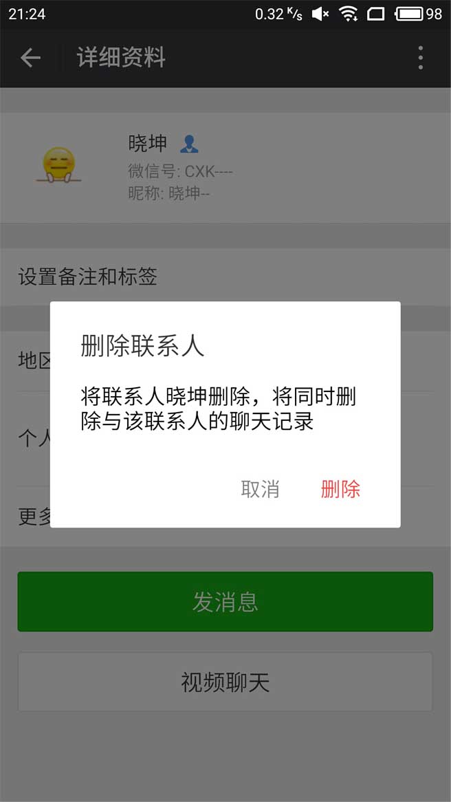 1.我們知道,其實微信每次刪除聯系人都會彈出此頁面