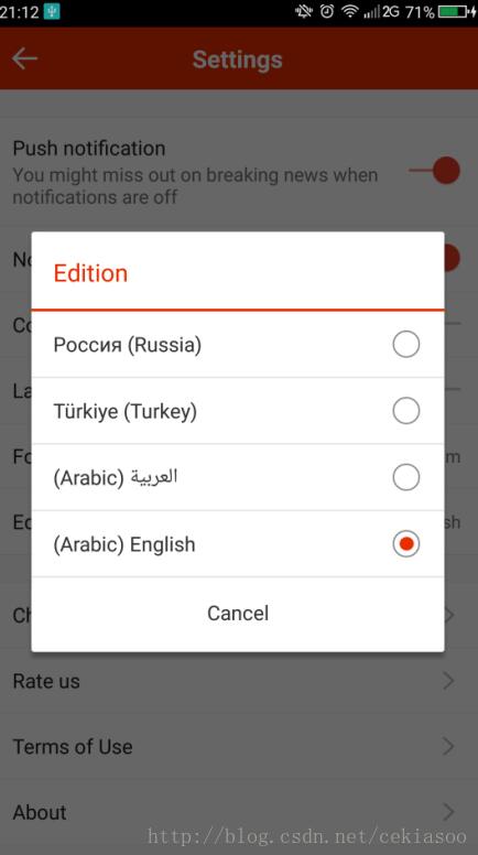 有時候應用需要在內部切換語言但又不影響系統的語言,比如是應用現在是中文的,系統語言也是中文的,我把應用的切換成英文顯示後系統語言還是中文的,系統語言切換後也不會被改變,還有就是有些機的系統是被改造精簡過的,比如有些國產機的系統的語言就被精簡剩中文和英文。支付寶、微信、Top Story都有在應用內部設置語言切換這樣的功能。