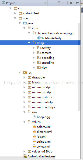 3.創建raw文件夾並添加beep.ogg 掃描聲音