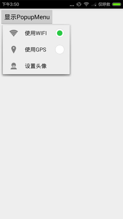 默認狀態下,PopupMenu的圖標是不顯示的,並且Android沒有為我們開放任何API去設置它的顯示狀態。為了顯示菜單項的圖標,可以自己重寫PopupMenu並修改相關屬性,也可以直接使用反射: