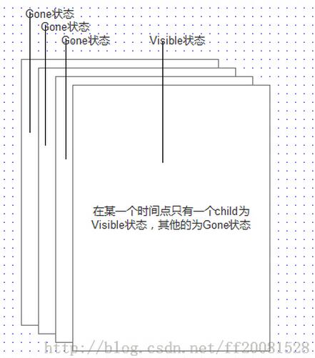 其實ViewFlipper工作機制很簡單,如上圖,就是將添加到ViewFlipper中的子View按照順序定時的顯示是其中一個子View,其他的子View設置為Gone狀態