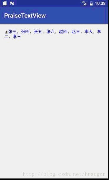 mPraiseTextView.setNameTextColor (Color.BLUE);//設置名字字體顏色