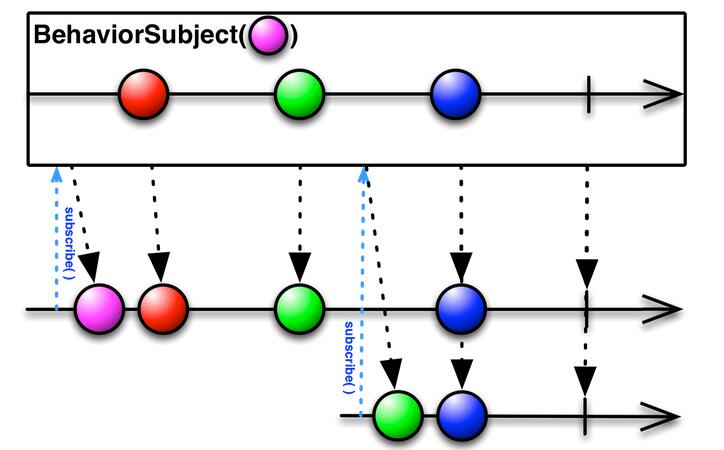 BehaviorSubject內部會緩存消息流中最近的一個消息, 在後續有Subscriber訂閱時,會直接將緩存的消息發送給Subscriber。