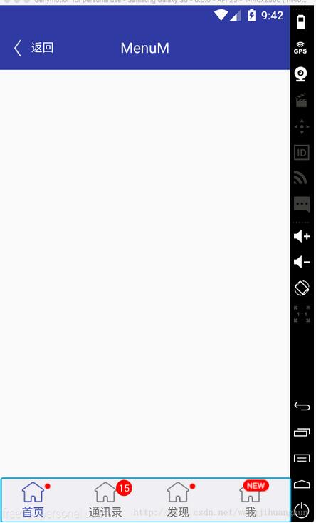 在app中經常會用到底部菜單的控件,每次都需要寫好多代碼,今天我們用到了前幾篇博客裡的控件來進一步封裝底部菜單。先看效果圖: