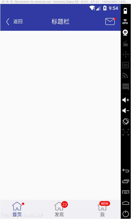 可以看到標題欄的消息控件,以及底部三個菜單項都是通過MenuItemM來實現的