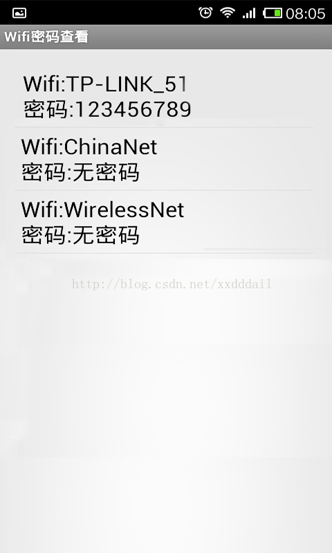 在Android手機中,連接了Wifi之後,密碼一般就看不到了,那有沒有什麼辦法可以查看到這些密碼呢?辦法一般有兩種,一種是通過查看wifi的配置文件,一種是使用命令。對於第一種,網上已經有很多了,大致就是先root,然後使用一些手機助手或者手機文件查看之類的工具(如ES、Root Exploere等)來查看wifi配置文件(位置是進入data/misc/wifi,目錄裡有個wpa_supplicant.conf或者其他文件名以.conf結尾的文件)。