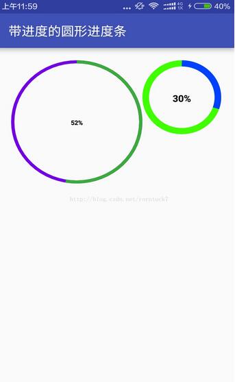 float textWidth = mPaint.measureText(percent + "%"); //測量字體寬度,我們需要根據字體的寬度設置在圓環中間
