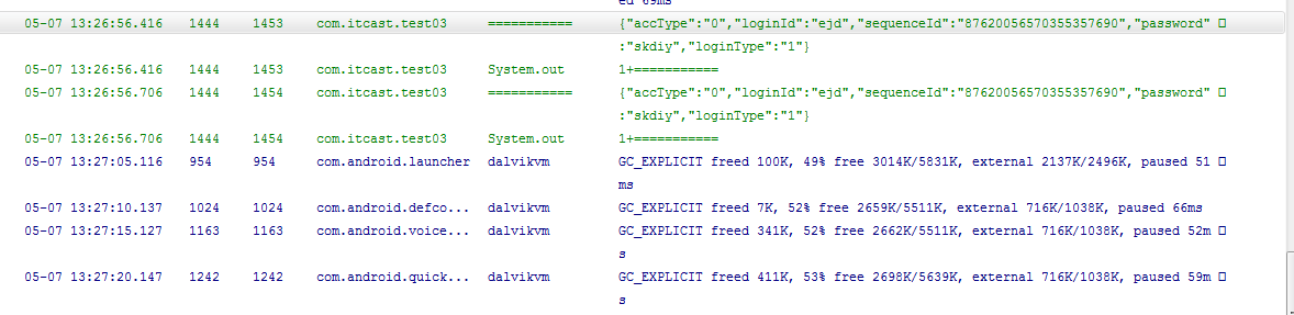 下面是我寫的代碼以及本程序的logcat的運行結果。