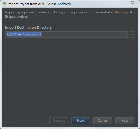 點擊"OK"以後,選擇導入的目標文件夾,默認的是相同的目錄下,相同的項目名稱後面跟了一個"1",實際上是新建了一個目錄: