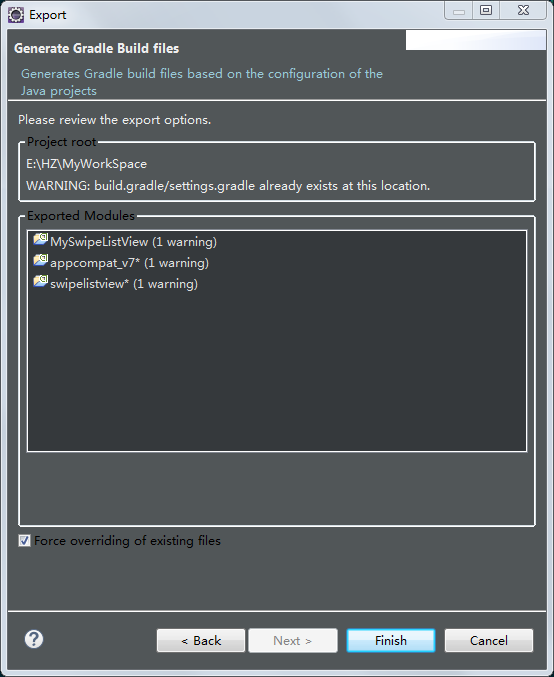 首先在Eclipse裡面選擇File->Export,選中"Generate Gradle build files":