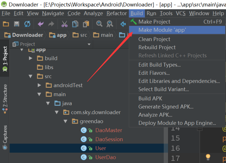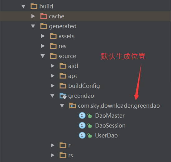 當我們編寫好實體類並添加自己需要的注解之後,點擊Make Project或者Make Module 'app',就會項目的build目錄下或者自己設定的目錄下看到生成的三個類文件:
