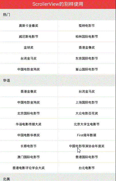如果不考慮更深層的性能問題,我個人認為ScrollerView還是很好用的。而且單用ScrollerView就可以實現分類型的RecyclerView或ListView所能實現的效果。