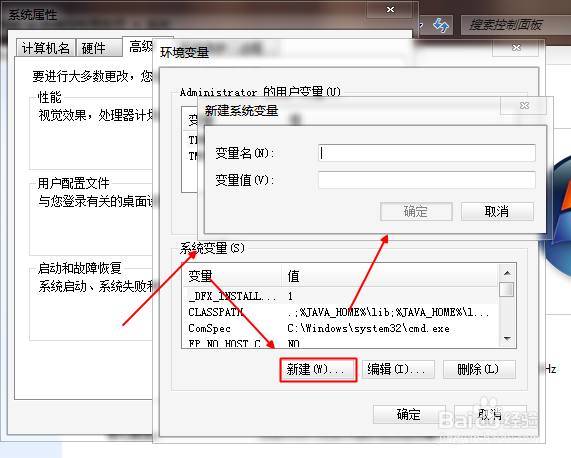 2.彈出”環境變量“對話框,單擊”新建“一個環境變量。