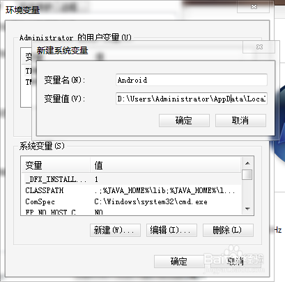 5.在變量值後面添加D:\Users\Administrator\AppData\Local\Android\sdk\platform-tools;%Android%