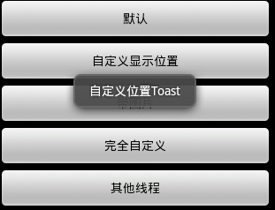 toast = Toast.makeText(getApplicationContext(), "自定義位置Toast",