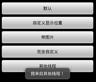 Toast.makeText(getApplicationContext(), "默認Toast樣式",
