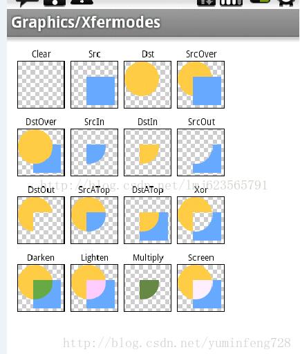PorterDuff.Mode中一共有16種效果顯示,如下: