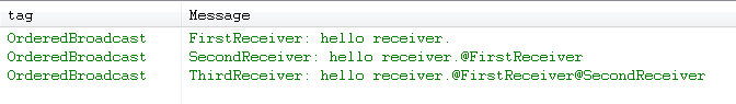 我們注意到,在FirstReceiver和SecondReceiver中最後都使用了setResultExtras方法將一個Bundle對象設置為結果集對象,傳遞到下一個接收者那裡,這樣以來,優先級低的接收者可以用getResultExtras獲取到最新的經過處理的信息集合。