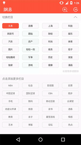 以上所述是小編給大家介紹的Android 仿網易新聞客戶端分類排序功能,希望對大家有所幫助,如果大家有任何疑問請給我留言,小編會及時回復大家的。在此也非常感謝大家對本站網站的支持!