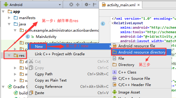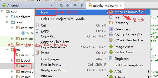 (2)在menu資源文件夾下建立serch_share_menu.xml文件(自定義名稱)