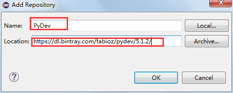 在Add Repository頁面,輸入你要獲取插件的名字和地址,其中地址一定要輸入正確。由於我們要獲取PyDev,所以這裡輸入名字為PyDev,地址為PyDev的下載地址: