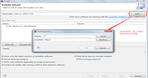 在Install頁面,點擊Add按鈕,進入Add Repository頁面。